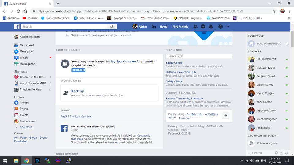 (11) Four people wrote plans to murder me (which were about the only thing Facebook were prepared to remove - see below).