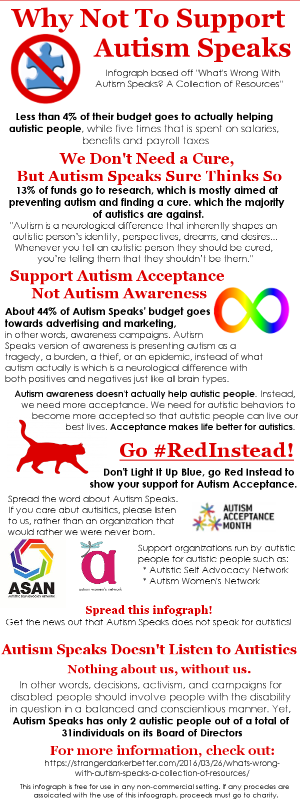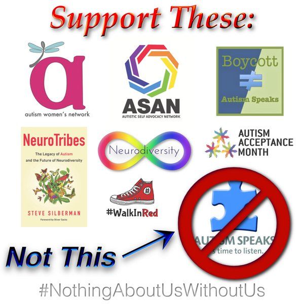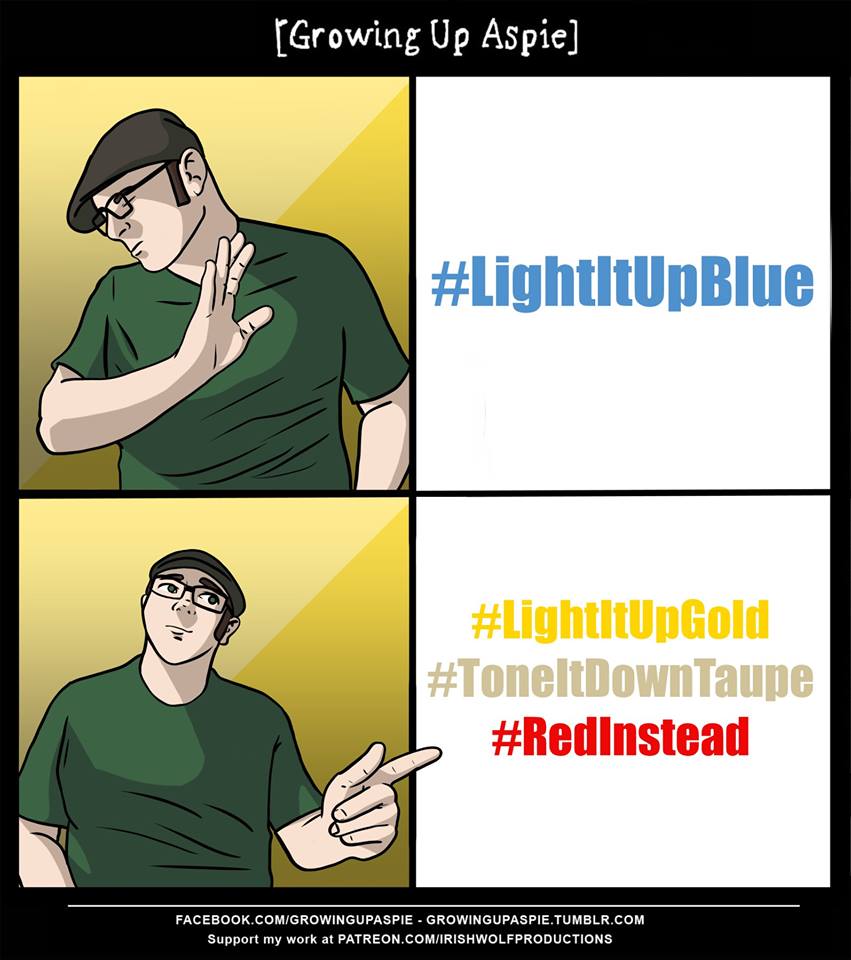 A guy called Nathan McConnell, the writer of a comic book series about autism he called [Growing Up Aspie], wrote several years ago, soon after Autism Speaks started, to say that Autism Speaks were bad.