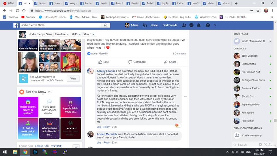 Now, I cannot prove, at this stage, that Nathan's argument with me was why these people did this to me, but, if you consider what Nathan accused me of doing, with the size of his book versus the size of my book, the bullying, the calling him a cockroach (versus calling her a different C-word), and all of the rest, there are just too many coincidences, plus the fact that this was reported, from a very long time ago, and surely it is related.