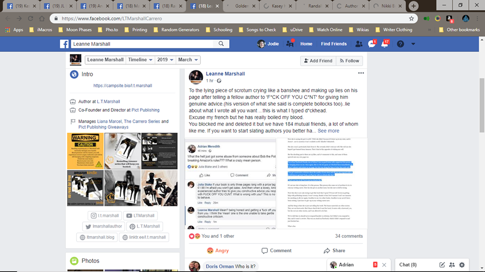 These are all fake. Not just bad reviews but fake ones, organised by LT Marshall, using her silly memes, and based on the lies told by LT Marshall and Kessily Lewel about me, lies aimed, it seemed, at ruining the sales of my book.